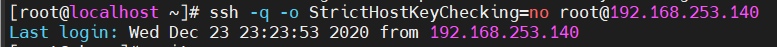ssh -q -o StrictHostKeyChecking=no root@192.168.253.140