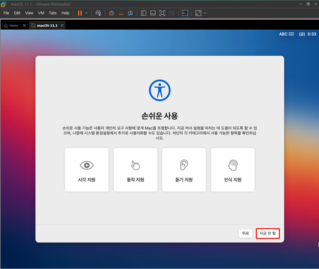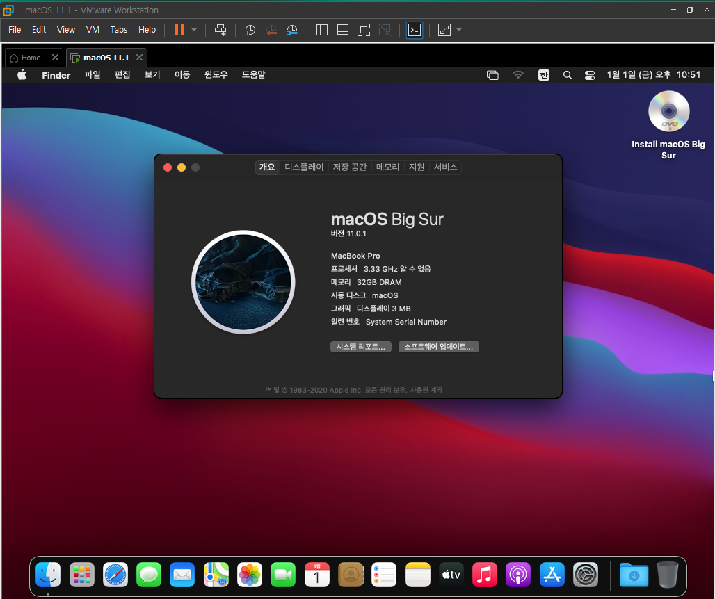 최근에 M1 맥미니를 주문했지만 아직 배송 전이고 해서 Big Sur를 경험해보고자 VMWare에 먼저 설치를 해봤습니다.