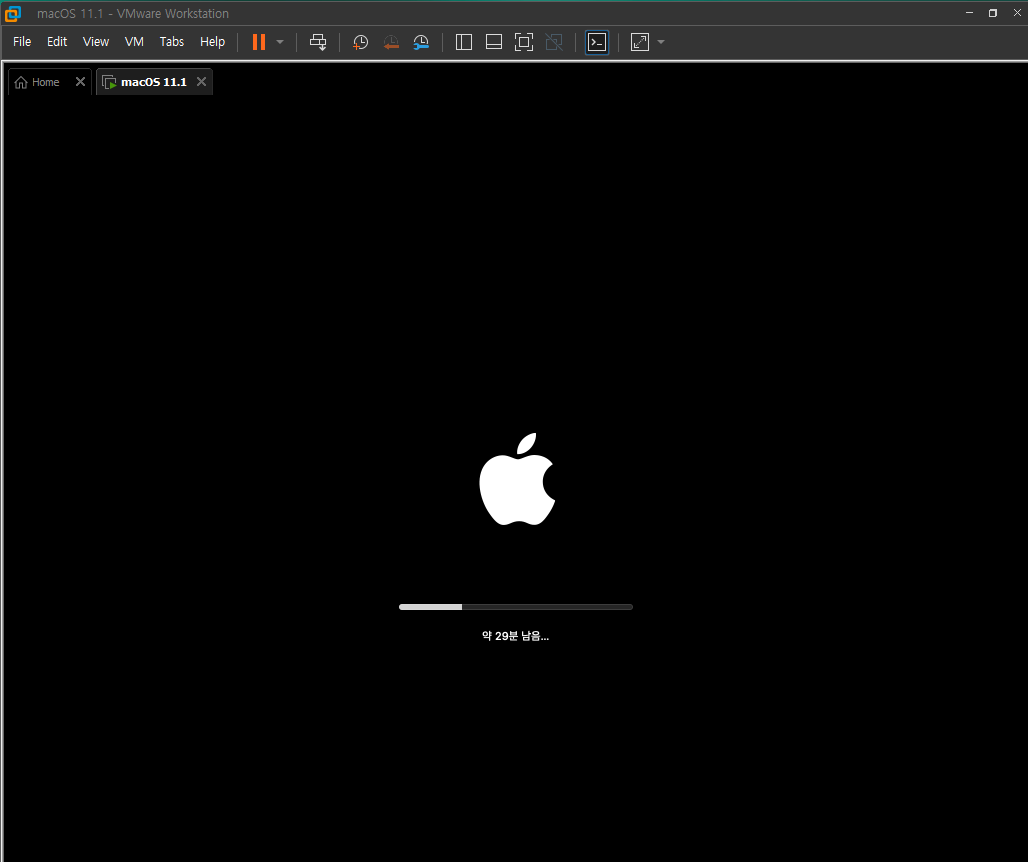 조금있으면 자동으로 재부팅되면서 아래의 사과로고와 함께 상태바가 보입니다.